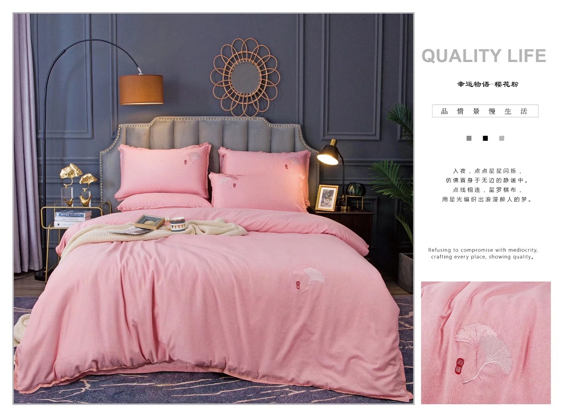 丽维绒四件套,100%优质长绒棉,采用最先进的陶瓷磨毛工艺,有效控制布料脱毛起球,使用环保染料印染工艺,手感细腻柔软舒适。