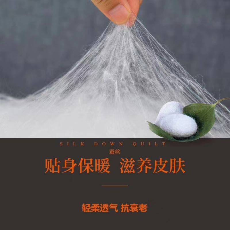 桑蚕丝长纤维蚕丝被 内里填充100%桑蚕丝,蚕丝是自然界中最轻最柔最细的天然纤维,富含十八种人体所必须的氨基酸,能促进皮肤细胞活力,防血管硬化,长期使用可防皮肤衰老。素有“人体第二肌肤”“纤维皇后”之美誉。产品工艺我们采用底边全开检测拉链开口,让制假造假无所遁形,方便检验各个角落的蚕丝情况。传统手工拉丝,上一层横纹,下一层则是纵纹,厚薄均匀,力道考究。细腻工艺,彰显品质,贴心呵护边缘更耐用。蚕丝被十分轻柔,又非常贴身,盖在身上它都会很好的贴合我们身体的凹陷部位,不会让你感觉到“空”,更不会让我们有压迫感。每一次睡眠,都是心动的感觉。